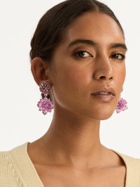 These earrings feature a beaded pompom stud that gives way to a sculpted drop formed from clustered, faceted beads in translucent rose. The intricate construction catches the light from every angle, creating a bold yet delicate sense of movement. Details - Dimensions: 6 cm x 2.75 cm - Weight: 30 grams - Clip Back with Comfort Pads - Country of Origin: India - Style Code: R26J196_ROS Materials & Care - 55% Plastic, 17% Brass, 15% Glass, 10% Metal, 3% Nylo - Avoid exposing your jewelry to harsh chemicals. - Lotions, cosmetics, hairspray and perfumes can cause chemical reactions that can cause the finish to deteriorate. - Before handling, washing hands after applying makeup and hair products will help to preserve the finish. - Do not wear in the pool, on the beach or in the shower. - Wipe away dirt and body oils with a slightly damp microfiber jewelry cloth or cotton ball and allow to dry. - Store separately in cloth pouches or small boxes to minimize scratching.