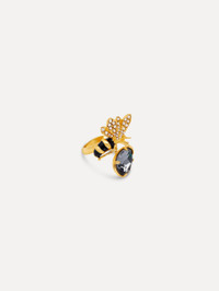 This striking ring features a crystal-winged bee atop a faceted stone. Finished with glossy striping and a bold gold-tone setting, it brings a playful edge to statement dressing. Details - Dimensions: 22 mm x 31 mm - Weight: 10 grams - European Glass Crystals - Country of Origin: Italy - Style Code: R26J612_GSH Materials & Care - 80% Brass, 10% Crystal, 10% Enamel - Avoid exposing your jewelry to harsh chemicals. - Lotions, cosmetics, hairspray and perfumes can cause chemical reactions that can cause the finish to deteriorate. - Before handling, washing hands after applying makeup and hair products will help to preserve the finish. - Do not wear in the pool, on the beach or in the shower. - Wipe away dirt and body oils with a slightly damp microfiber jewelry cloth or cotton ball and allow to dry. - Store separately in cloth pouches or small boxes to minimize scratching.
