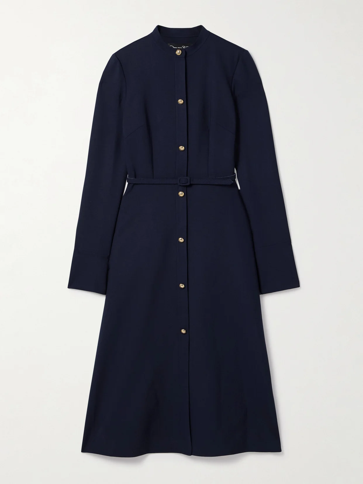 Oscar de la Renta's midi dress showcases the label's meticulous craftsmanship and refined design. It's tailored from a wool-blend, fastens with shimmering gold-tone snaps and has a tonal belt to cinch the waist.