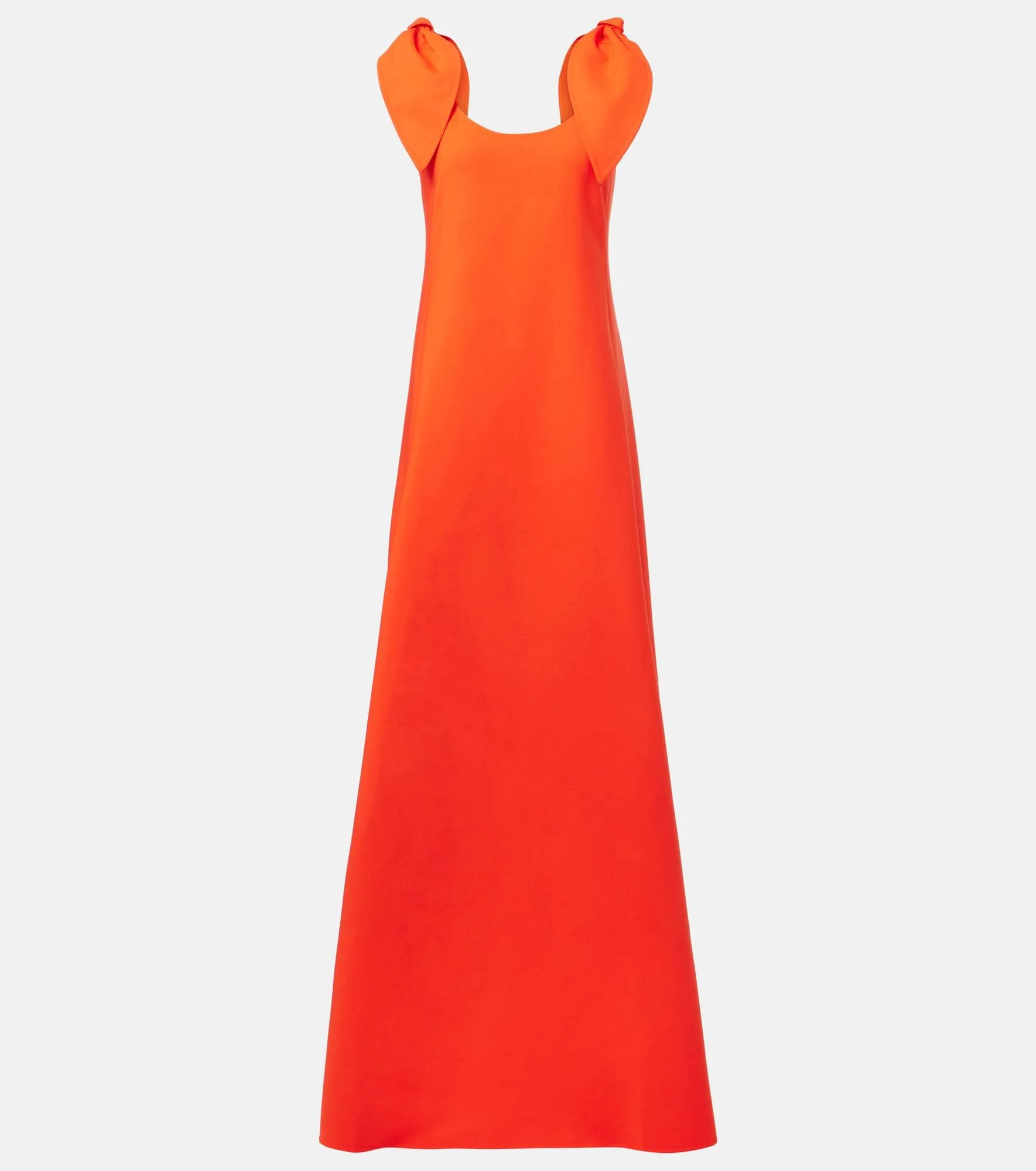 Oscar de la Renta's grandiose gowns are designed to grace red carpets and ballrooms. This wool-blend gown is minimalist but not simple, due to the bright hue and the bow details on the shoulders. Product Details - Material: 94% wool, 5% elastane, 1% other fibres - Care instructions: dry clean - Made in Italy - Designer color name: Carnelian - Item color: red - Closure: zipped back - Item number: P01047881 Size & Fit - True to size - Cinched waist - Non-stretchy fabric - The model seen in the picture is 178cm-5'10" and wearing a size US 4