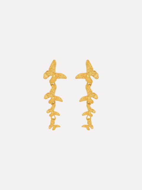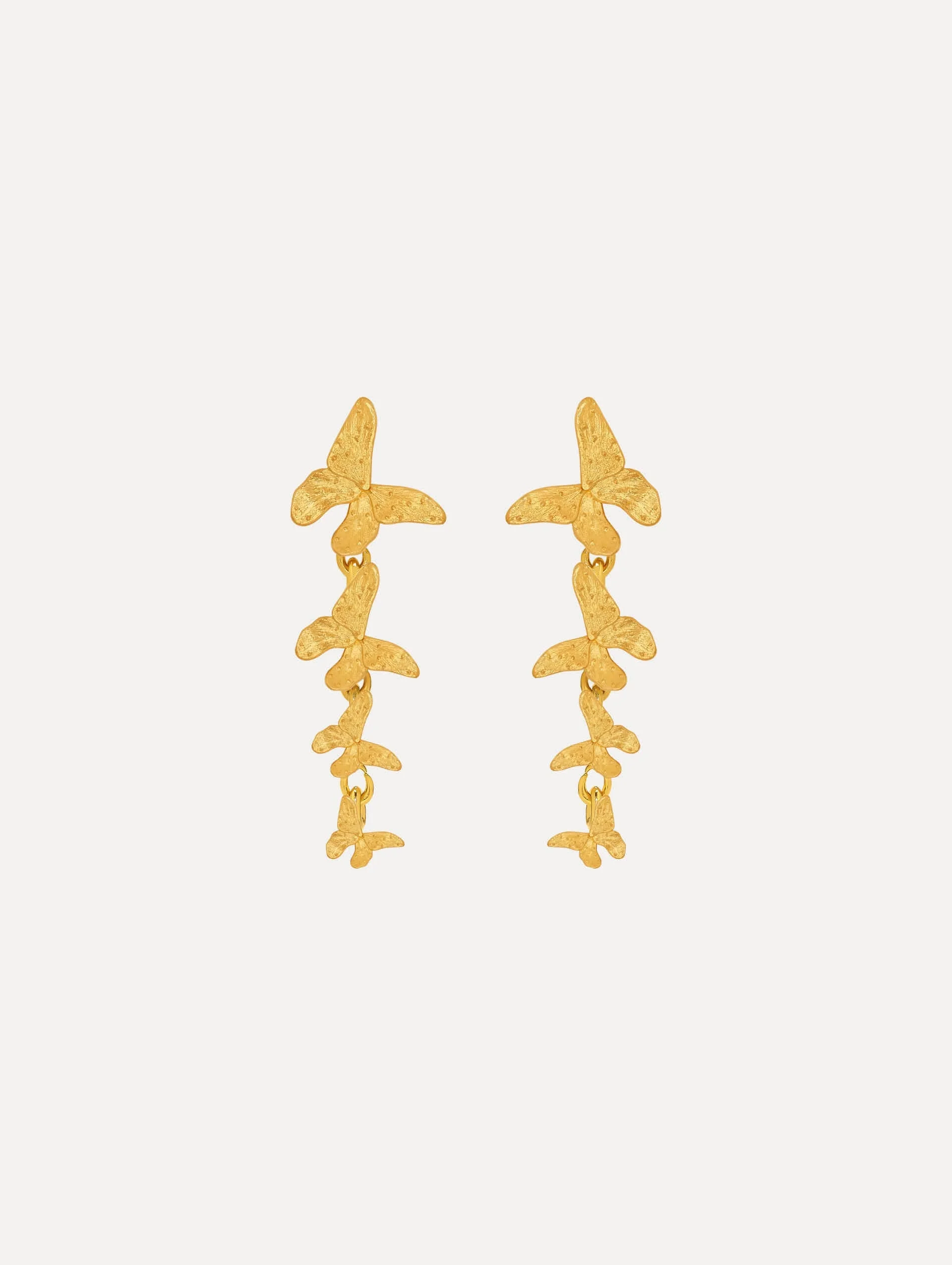These gold butterfly drop earrings create a cascading effect, with an artful arrangement of butterflies that appear to drift weightlessly. Pair with the coordinating ring or bracelet. Details - Dimensions: 83 mm x 28 mm - Weight: 18 grams - Post Backs - For Pierced Ears - Style Code: P25J930_GOL - Country of Origin: Italy Materials & Care - 100% Brass