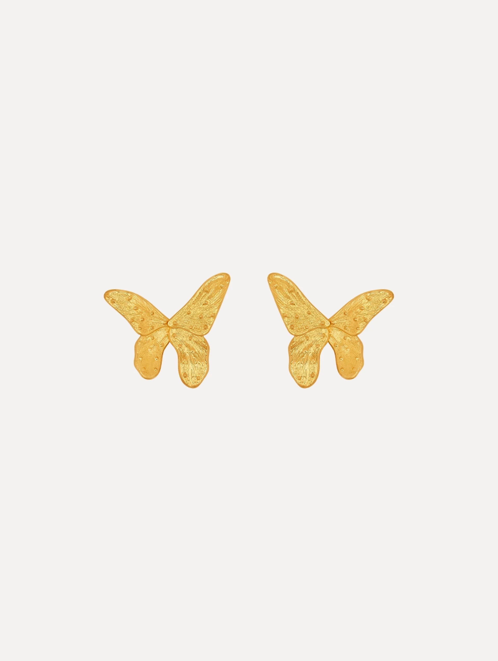 These gold butterfly earrings capture the delicate beauty of nature. Each earring features a gracefully detailed butterfly, its wings poised as if in mid-flight. Details - Dimensions: 25 mm x 24 mm - Weight: 7 grams - Post Backs - For Pierced Ears - Style Code: P25J115_GOL - Country of Origin: Italy Materials & Care - 100% Brass