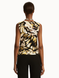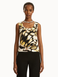 This classic ribbed-knit tank is printed with the Abstract Butterfly motif, a pillar of the Pre-Fall 2025 Collection. Cut in a form-fitting silhouette, this style features a scoop neckline and banded trim. Wear alone for a sleeveless statement or pair with its coordinating cardigan for optimal versatility. Details - Sleeveless - Scoop Neckline - Pullover Style - Ribbed Trim - Unlined - Style Code: 25PN1266PBA_BKU - Country of Origin: Italy Materials & Care - 57% Cotton, 43% Viscose