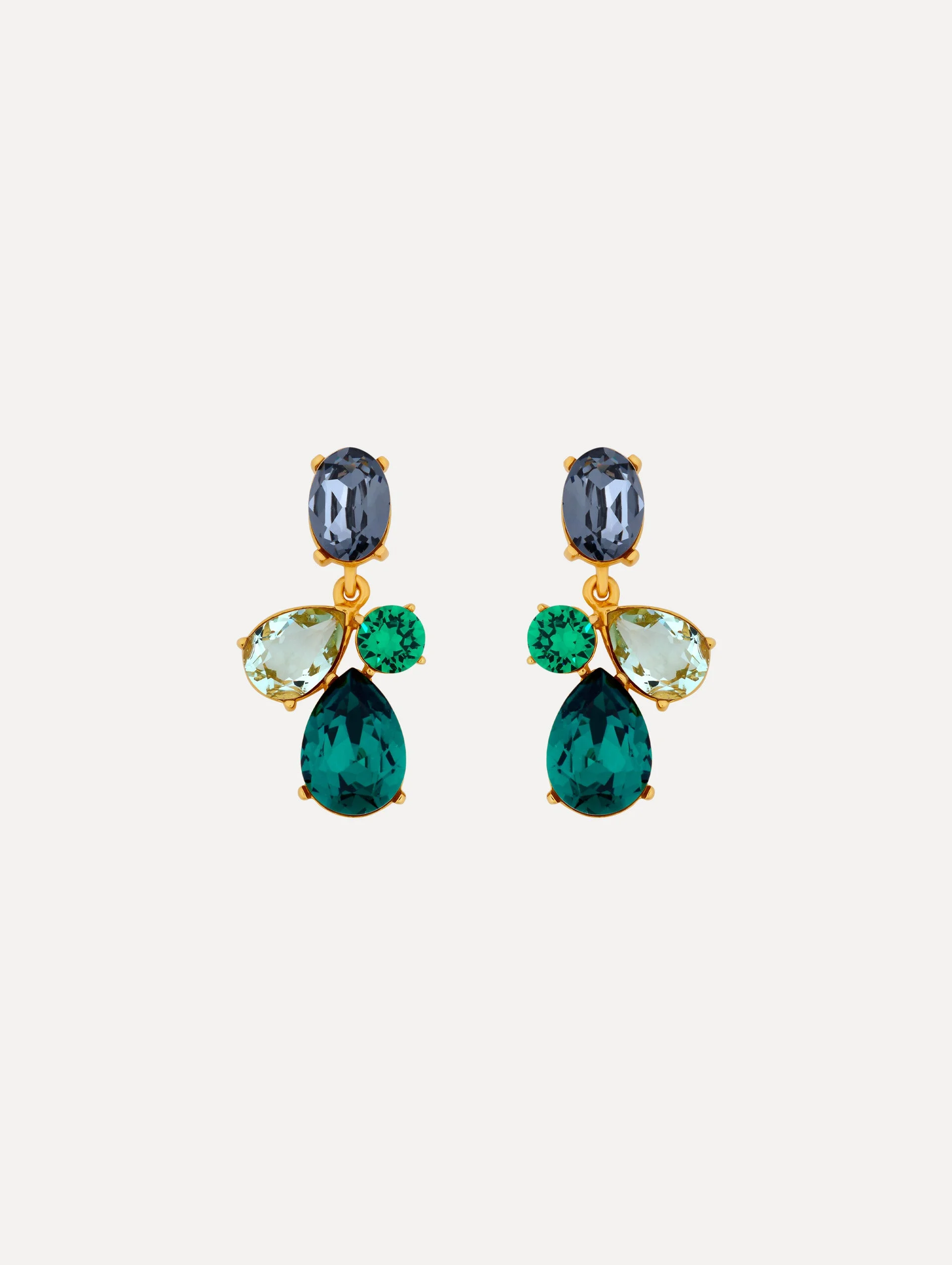 A cascade of softly-hued drops lends a refined sweetness to this silhouette. Set in polished gold, their muted tones create a subtle interplay of light and luster, offering an understated take on playful elegance. Details - Dimensions: 22 mm x 45 mm - Weight: 28 grams - Post Backs - For Pierced Ears - European Glass Crystals - Country of Origin: Italy - Style Code: R26J937_SAP Materials & Care - 60% Brass, 40% Crystal Glass - Avoid exposing your jewelry to harsh chemicals. - Lotions, cosmetics, hairspray and perfumes can cause chemical reactions that can cause the finish to deteriorate. - Before handling, washing hands after applying makeup and hair products will help to preserve the finish. - Do not wear in the pool, on the beach or in the shower. - Wipe away dirt and body oils with a slightly damp microfiber jewelry cloth or cotton ball and allow to dry. - Store separately in cloth pouches or small boxes to minimize scratching.