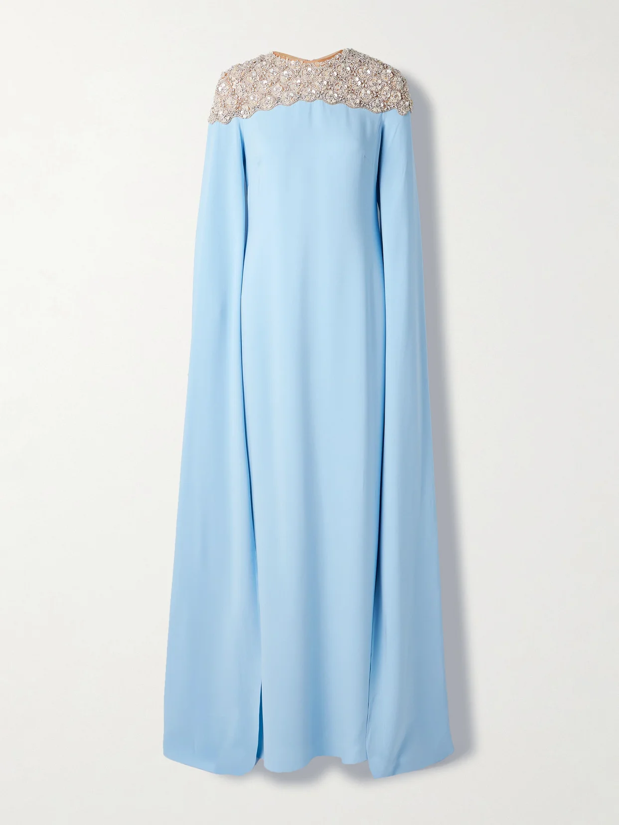 Cape-effect Embellished Tulle-trimmed Silk-blend Georgette Gown