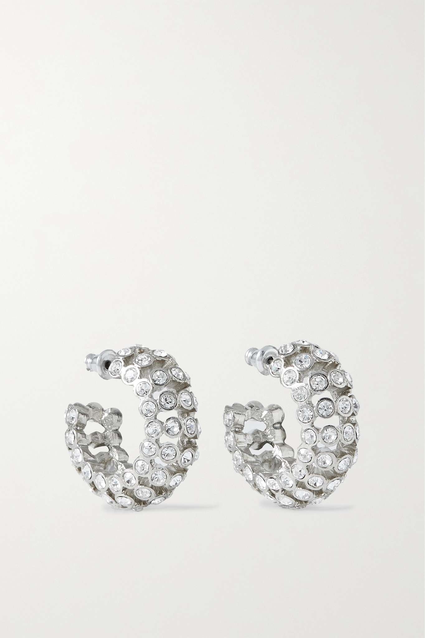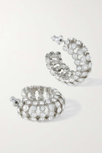 EDITORS'NOTES Oscar de la Renta's earrings have a tubular hoop shape inspired by the form of a caterpillar. Made from silver-tone metal, they're set with rows of crystals that sparkle from every angle. SIZE & FIT This item’s measurements are: - Width: 2.5cm / 1in - Drop: 2cm / 0.8in DETAILS & CARE - Bell-back fastening for pierced ears