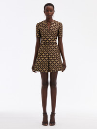 PRINTED WITH THIS SEASON'S 'O' CHAIN-LINK MOTIF, MADE OF THE INTERLOCKING OSCAR 'O' EMBLEM, THIS DRESS SUBTLY SHOWCASES BRAND HERITAGE. CUT FROM STRUCTURED JACQUARD, THIS MINI DRESS BOASTS SHORT SLEAVES AND AN OPTIONAL SELF-BELT. SHORT SLEEVES / SPLIT NECKLINE / MID-THIGH LENGTH / REMOVEABLE, COORDINATING BUCKLE BELT WITH BELT LOOPS / SIDE SEAM POCKETS / CONCEALED BACK ZIPPER / DRY CLEAN DIMENSIONS: MODEL IS 5'10.5" / 180 CM AND WEARING SIZE 2 MATERIAL: 41% COTTON, 32% POLESTER, 13% METALLISED POLYESTER, 10% SILK, 4% POLYAMIDE MADE IN ITALY STYLE 24FN223LCQ_CFG