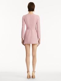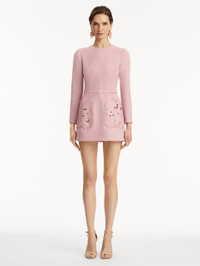 Cut from a wool-blend tweed in a soft shade of lily, this mini dress is defined by cherry blossom threadwork cutout pockets, merging classic elegance with intricate detailing. Details - Long Sleeves - Jewel Neckline - Removeable, Coordinating Buckle Belt - Front Patch Pockets - Concealed Back Zipper - 100% Silk Lining - Style Code: 25PE286CWD_LIY - Country of Origin: Italy Materials & Care - 64% Cotton, 27% Wool, 9% Polyamide; Lining: 100% Silk