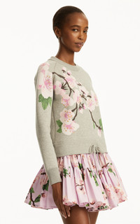 PRODUCT DETAILS - Long sleeve, crew neck, ribbed trim - Slip on - Unlined - Composition: 43% Viscose, 39% Cotton, 13% Polyester, 4% Polyamide, 1% Elastane - Color: Grey/Pink - Dry clean only - Pre-Fall '25
