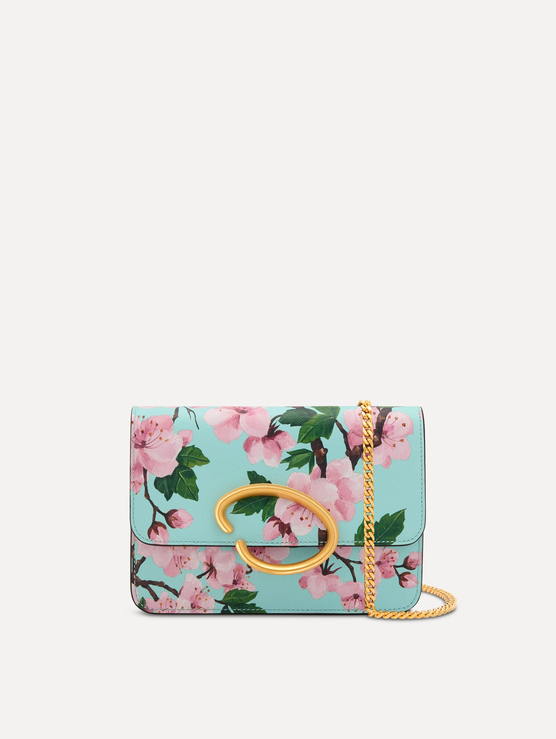An everyday essential, this cherry blossom printed style is crafted from Saffiano leather with Oscar's signature 'O' at the clasp. With a detachable chain link shoulder strap, this piece effortlessly transitions into a clutch for daytime chic or evening glam. Details - Dimensions: 18.2 cm x 13.1 cm x 4.3 cm - Weight: 300 grams - Chain Length 110 cm - Drop Length 51 cm - 4 Interior Card Pockets - Interior Large Pocket - Magnetic Closure - Detachable Chain Shoulder Strap - Light Taupe Suede Interior - Fits Up to an iPhone 16 Pro - Style Code: 25PH059SAF_AQM - Country of Origin: Italy Materials & Care - - 100% Calfskin - - Saffiano leather is an embossed calfskin grain leather that is generally resistant to scratches. - - Remove dust regularly with a dry or slightly damp cloth and allow to dry completely. - - Avoid prolonged exposure to direct sunlight to prevent discoloration. - - Keep away from heat sources to prevent the leather from drying out or becoming rigid. - - Store in its original packaging in a cool, dry place, protected from light, heat, and humidity. - - For oil stains, gently wash with water and mild soap. If needed, test a degreasing agent on a hidden area before applying. - - For other stains, wipe lightly with lukewarm water. If the stain persists, try using soapy water with a gentle touch.
