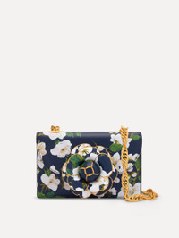 The classic TRO bag is reworked in eye-catching cherry blossom printed Saffiano leather with a detachable chain shoulder strap. The exquisite custom-created, metal-trimmed gardenia applique featured prominently at the front sets this handbag apart—making it the perfect companion for day or night. Details - Dimensions: 21 cm x 13.5 cm x 6.5 cm - Weight: 580 grams - Chain Length 120 cm - Drop Length 57.1 cm - Interior Pocket - Magnetic Closure - Detachable Chain Shoulder Strap - Light Taupe Microfiber Interior - Fits Up to an iPhone 16 Pro - Style Code: 25PH001SAF_NVY - Country of Origin: Italy Materials & Care - - 100% Calfskin - - Saffiano leather is an embossed calfskin grain leather that is generally resistant to scratches. - - Remove dust regularly with a dry or slightly damp cloth and allow to dry completely. - - Avoid prolonged exposure to direct sunlight to prevent discoloration. - - Keep away from heat sources to prevent the leather from drying out or becoming rigid. - - Store in its original packaging in a cool, dry place, protected from light, heat, and humidity. - - For oil stains, gently wash with water and mild soap. If needed, test a degreasing agent on a hidden area before applying. - - For other stains, wipe lightly with lukewarm water. If the stain persists, try using soapy water with a gentle touch.