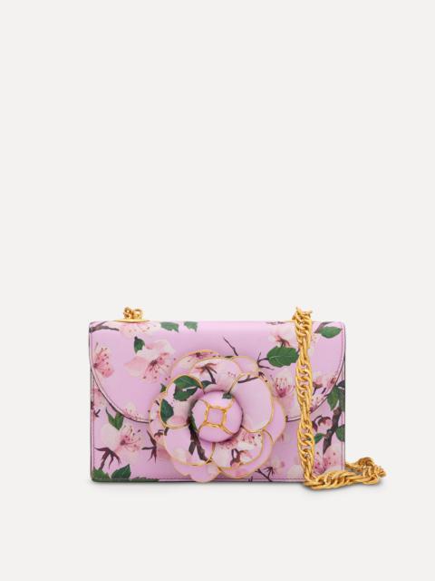 The classic TRO bag is reworked in eye-catching cherry blossom printed Saffiano leather with a detachable chain shoulder strap. The exquisite custom-created, metal-trimmed gardenia applique featured prominently at the front sets this handbag apart—making it the perfect companion for day or night. Details - Dimensions: 21 cm x 13.5 cm x 6.5 cm - Weight: 580 grams - Chain Length 120 cm - Drop Length 57.1 cm - Interior Pocket - Magnetic Closure - Detachable Chain Shoulder Strap - Light Taupe Microfiber Interior - Fits Up to an iPhone 16 Pro - Style Code: 25PH001SAF_PIN - Country of Origin: Italy Materials & Care - - 100% Calfskin - - Saffiano leather is an embossed calfskin grain leather that is generally resistant to scratches. - - Remove dust regularly with a dry or slightly damp cloth and allow to dry completely. - - Avoid prolonged exposure to direct sunlight to prevent discoloration. - - Keep away from heat sources to prevent the leather from drying out or becoming rigid. - - Store in its original packaging in a cool, dry place, protected from light, heat, and humidity. - - For oil stains, gently wash with water and mild soap. If needed, test a degreasing agent on a hidden area before applying. - - For other stains, wipe lightly with lukewarm water. If the stain persists, try using soapy water with a gentle touch.