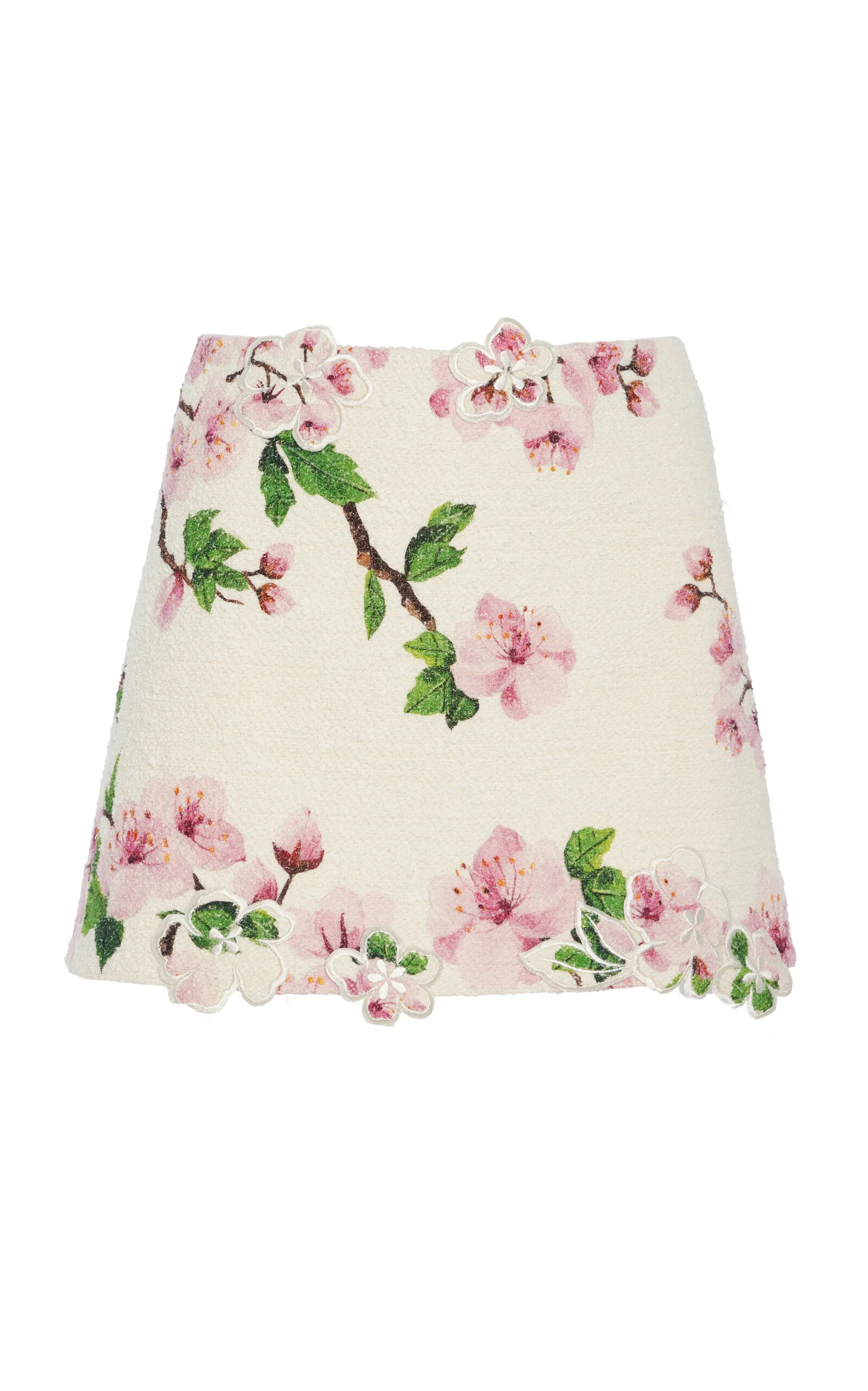 PRODUCT DETAILS - High-waisted, fitted, embroidered, mini hem - Concealed zip fastening - Lined - Composition: 64% Cotton, 27% Virgin Wool, 9% Polyamide; Lining: 100% Silk - Color: Pink/Ivory - Dry clean only - Pre-Fall '25