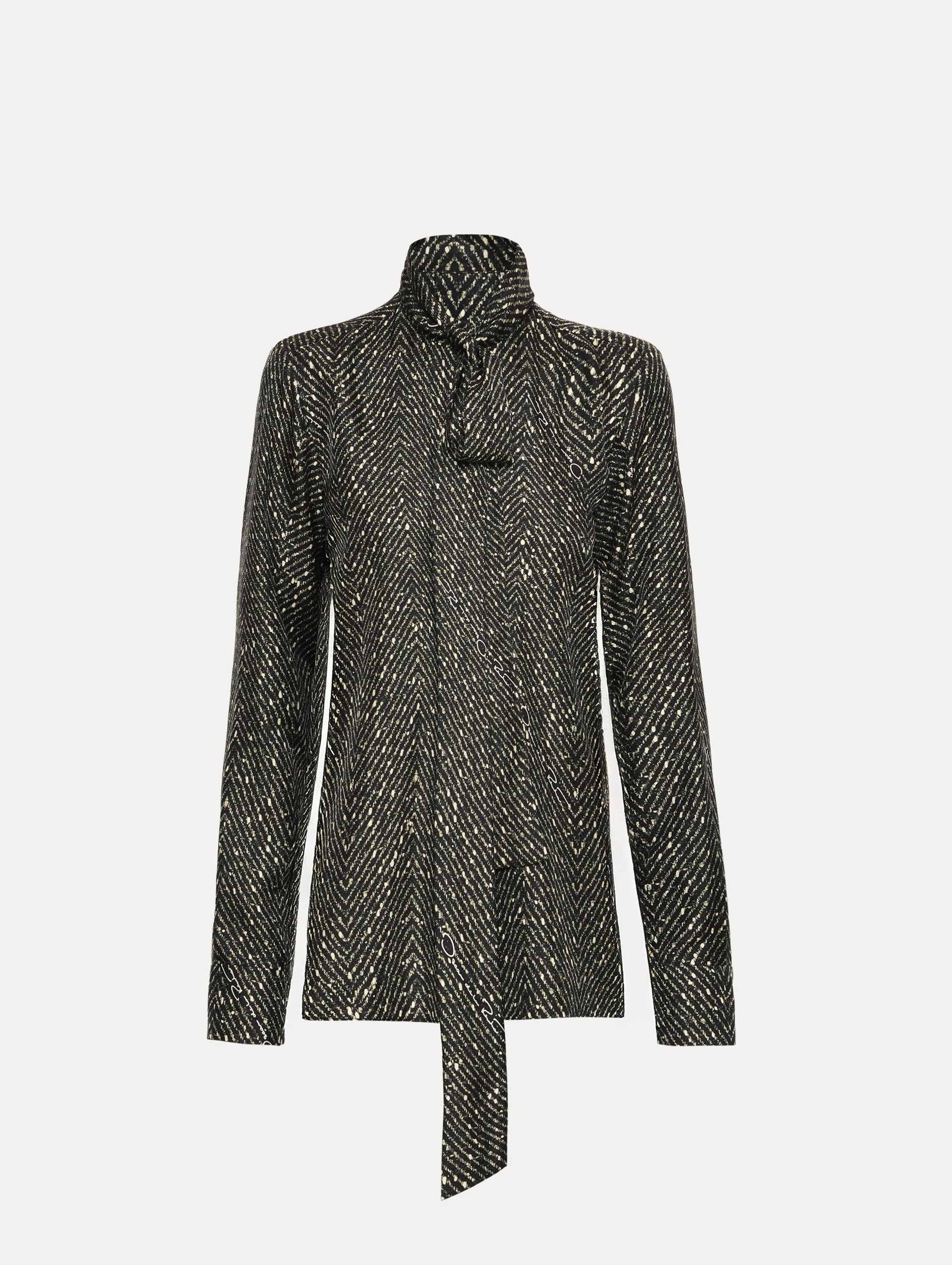 CHEVRON TIE-NECK SILK TWILL BLOUSE