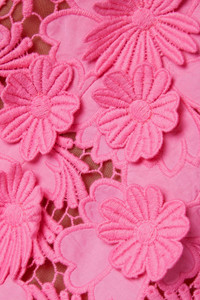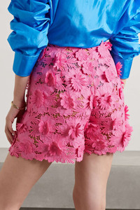 EDITORS'NOTES Oscar de la Renta's shorts beautifully showcase the house's impeccable craftsmanship - they're made from cotton guipure lace that's topped with hand-applied blooms for a cool 3D effect. Designed in a bright-pink hue, they sit high on the waist and have a sheer tulle lining so you'll want to opt for tonal underwear. SIZE & FIT - Fits true to size, take your normal size - High-rise, cut for a wide-leg fit - Mid-weight, non-stretchy fabric - Model is 177cm/ 5'10" and is wearing a US 2 DETAILS & CARE - Bright-pink cotton guipure lace - Concealed hook and zip fastening at side - 100% cotton; lining: 100% silk - Designer color: French Pink