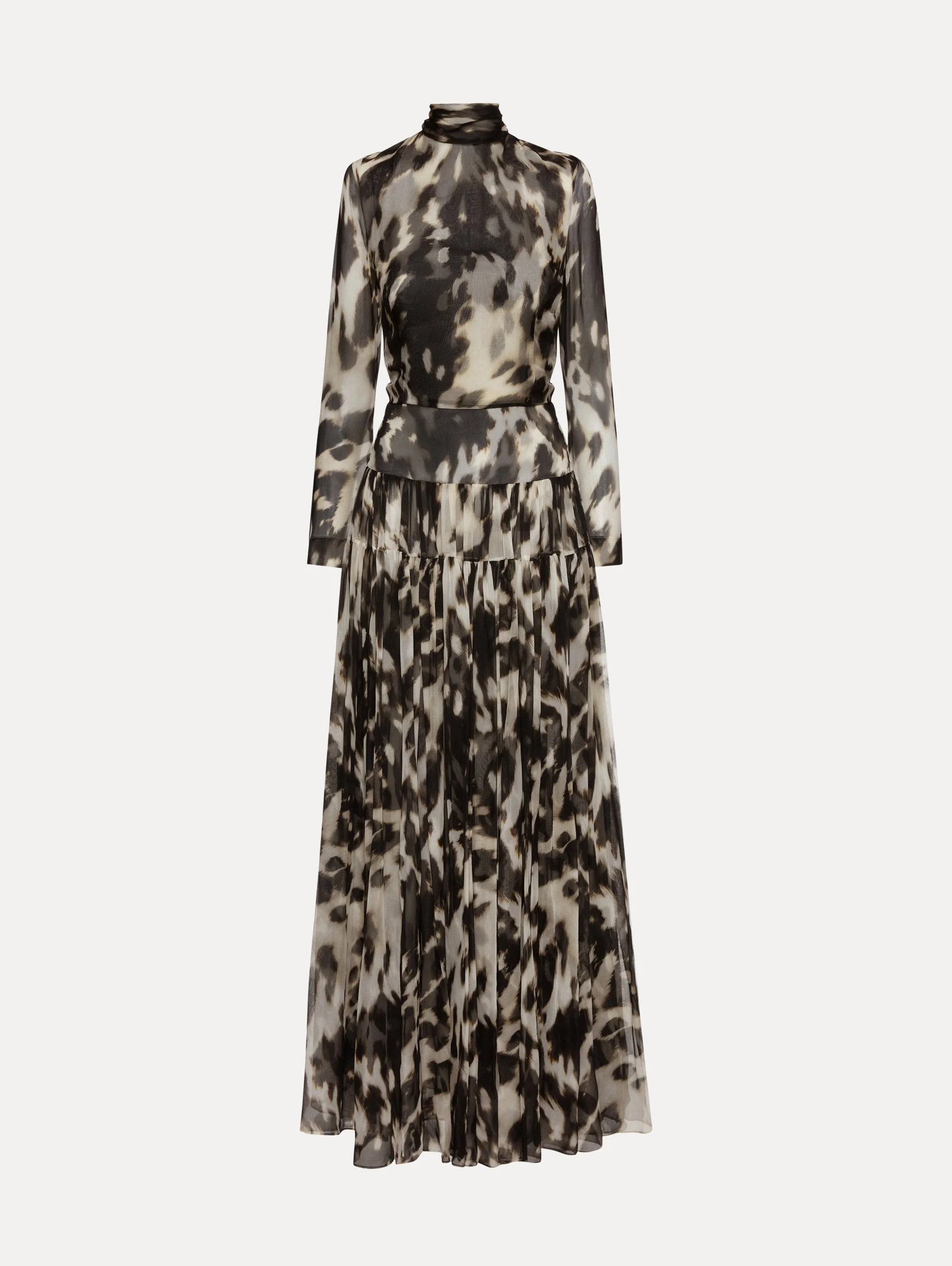 COWHIDE PRINTED SILK CHIFFON DRESS