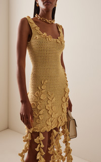 For Resort ’26, Creative directors Laura Kim and Fernando Garcia offer a perfect mix of crisp daytime silhouettes and bold evening standouts that stun from the gala to the after party. Expertly knit from crocheted cotton, this scoop-neck mini features appliqued florals that appear as though they're cascading off the silhouette. PRODUCT DETAILS - Resort '26 - Slip on - Composition: 100% Cotton - Designer color: Banana - Dry clean - Made in the USA SIZE & FIT - Our model is wearing a size Small - Model is 5’10” with a 31” bust, 23.5” waist, and 33.5” hip