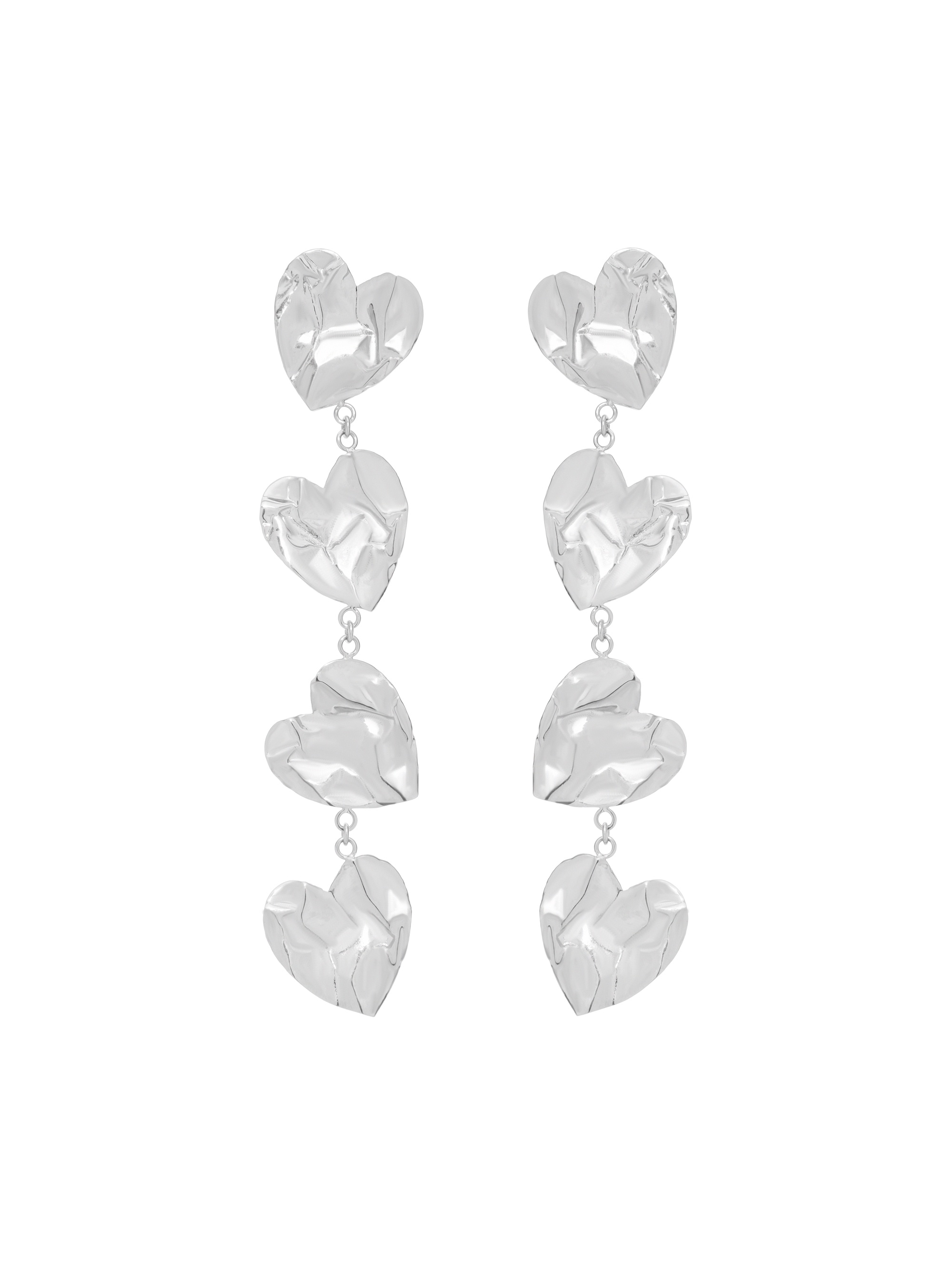 THESE HEART DROP EARRINGS ECHO A DELICATE CRUSHED CONSTRUCTION AND WILL ADD A TOUCH OF ROMANCE TO EVEN THE SIMPLEST OF LOOKS. PAIR WITH EITHER THE COORDINATING BRACELET OR NECKLACE TO MAXIMIZE SHINE. N/A MATERIAL: 100% BRASS MADE IN ITALY STYLE P23J943_SIL