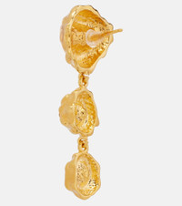 Finish off your sophisticated looks with pieces like these drop earrings from Oscar de la Renta. Crafted from gold-toned brass with a textural finish, this pair is defined by triple crystal embellishments for a dazzling finish. Product Details - Material: brass, glass, bronze, yellow gold - Made in Italy - Item color: gold - Closure: butterfly-back fastening - Includes: dust bag, box - Item number: P01054533 Size & Fit - Length 5cm-2" - Max. width 1,5cm-0.5"