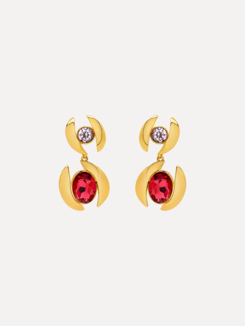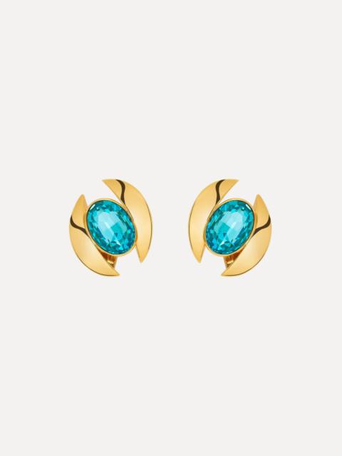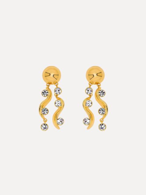 These drop earrings feature two polished gold-tone waves, each accented with brilliant round crystals, cascading from a sleek gold ball stud. Pair with the coordinating necklace. Details - Dimensions: 6.5 cm x 2 cm - Weight: 15 grams - Clip Backs with Comfort Pads - European Glass Crystals - Style Code: F25J905_CRT - Country of Origin: Italy Materials & Care - - 98% Brass, 2% Crystal Glass - - Avoid exposing your jewelry to harsh chemicals. - - Lotions, cosmetics, hairspray and perfumes can cause chemical reactions that can cause the finish to deteriorate. - - Before handling, washing hands after applying makeup and hair products will help to preserve the finish. - - Do not wear in the pool, on the beach or in the shower. - - Wipe away dirt and body oils with a slightly damp microfiber jewelry cloth or cotton ball and allow to dry. - - Store separately in cloth pouches or small boxes to minimize scratching.