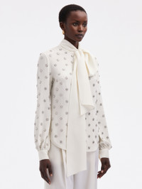 CRYSTAL EMBROIDERED TIE-NECK BLOUSE