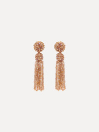 These tassel earrings cascade in sculptural strands, each crystal carefully strung to catch the light. Finished with crystal-strung post for a touch of texture, they bring playful charm to any look. Details - Dimensions: 8.3 cm x 1.8 cm - Weight: 30 grams - Clip Backs with Comfort Pads - Style Code: F25J187_CHM - Country of Origin: India Materials & Care - - 70% Glass, 5% Polyvinyl Chloride, 5% Viscose, 5% Polyester, 5% Brass - - Avoid exposing your jewelry to harsh chemicals. - - Lotions, cosmetics, hairspray and perfumes can cause chemical reactions that can cause the finish to deteriorate. - - Before handling, washing hands after applying makeup and hair products will help to preserve the finish. - - Do not wear in the pool, on the beach or in the shower. - - Wipe away dirt and body oils with a slightly damp microfiber jewelry cloth or cotton ball and allow to dry. - - Store separately in cloth pouches or small boxes to minimize scratching.