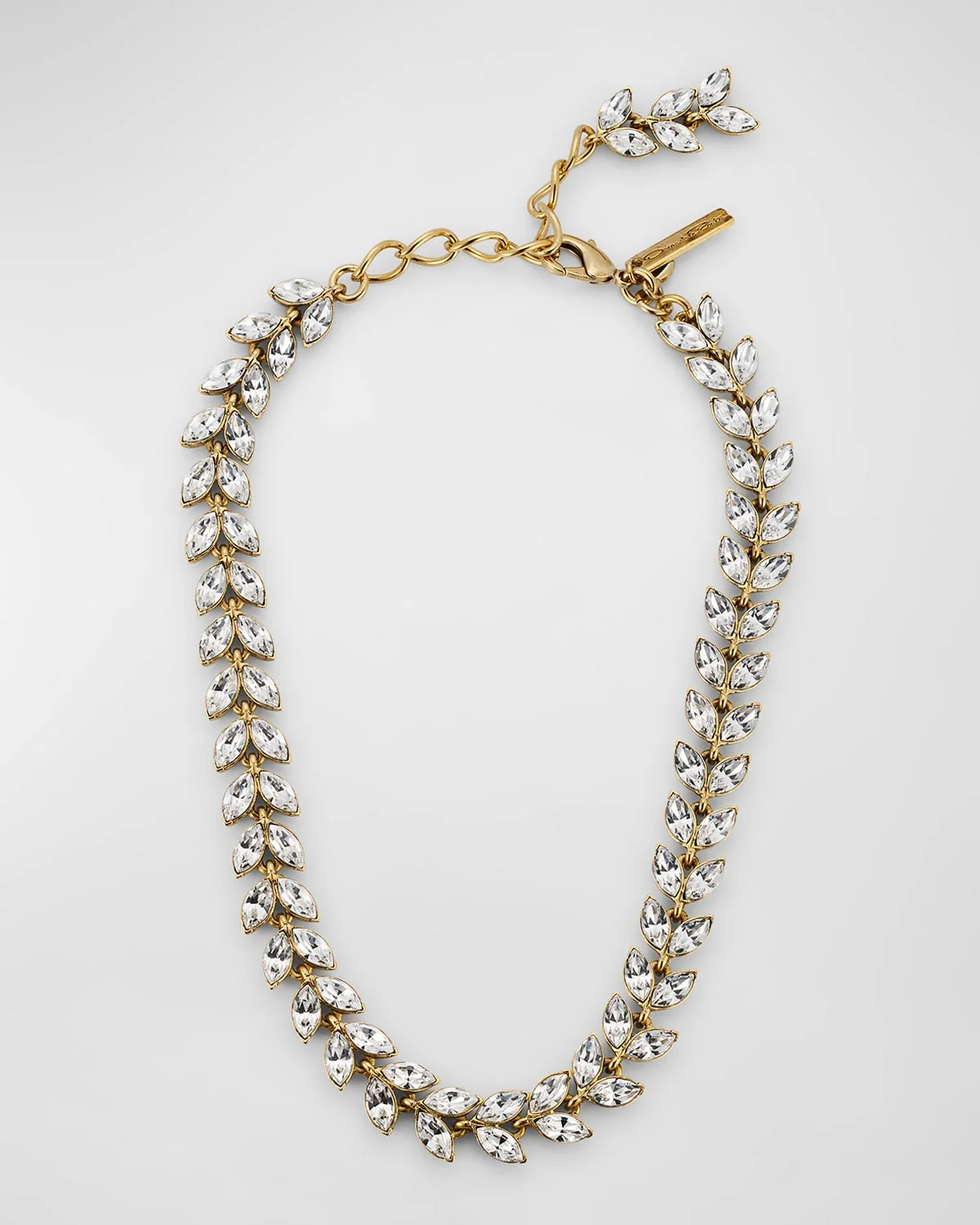 - Oscar de la Renta necklace - Approx. 19"L - Gold-tone pewter and brass - Glass crystals - Adjustable length - Lobster clasp - Made in USA from imported materials