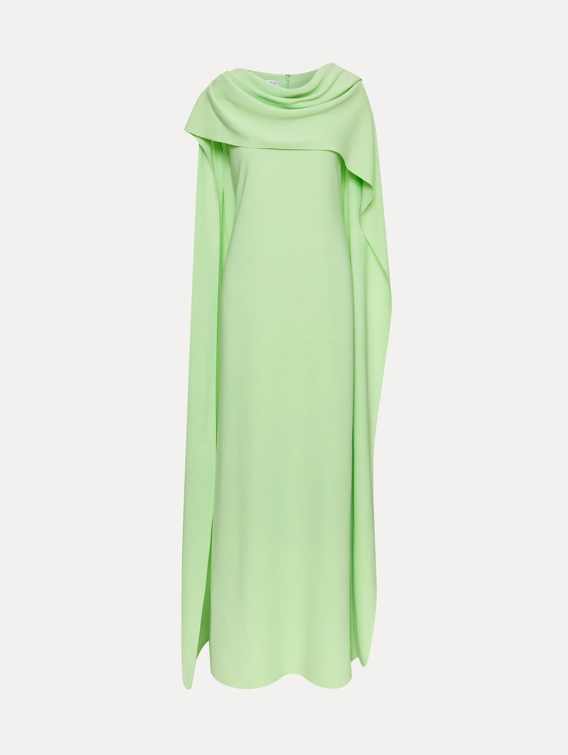 Crafted from heavy silk stretch georgette in a lively shade of pistachio, this caftan exudes effortless elegance. The expertly draped neckline cascades into a graceful cape back, while the relaxed silhouette adds a sense of fluidity and ease. Details - Sleeveless - Cape Back - Relaxed Silhouette - Floor-Sweeping Hemline - Pullover Style - Unlined - Style Code: 25SNX991HSG_PIT - Country of Origin: USA Materials & Care - 94% Silk, 6% Elastane