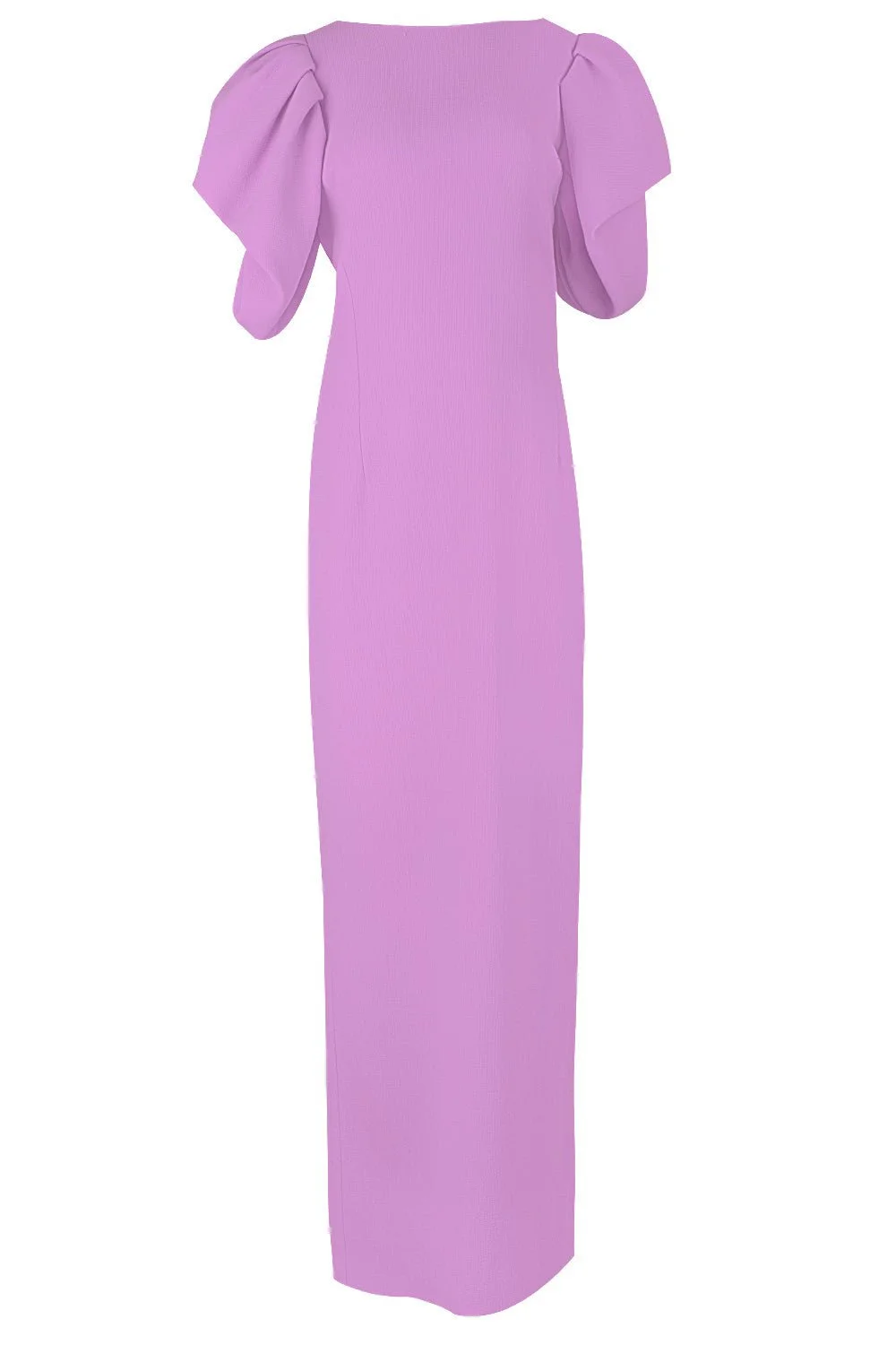 DETAILS AND INSIGHT Oscar De La Renta draped sleeve column gown in lavender. 95% WV 4% PA 1% EA Dry Clean Made in Italy Style 23FN045STW-LAVENDER