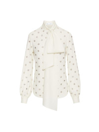 CRYSTAL EMBROIDERED TIE-NECK BLOUSE