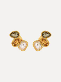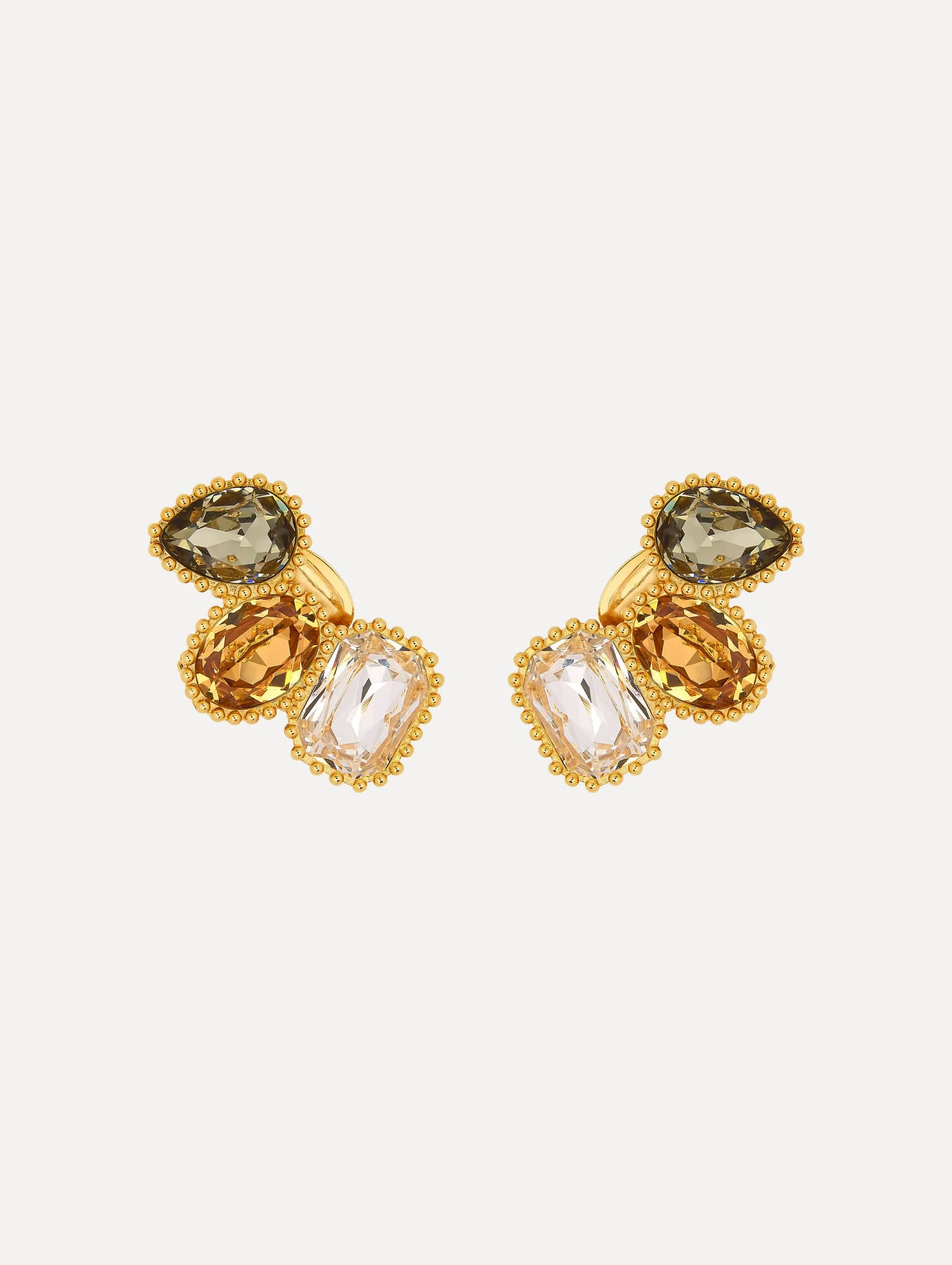 These ear cuffs feature faceted stones, each bordered by polished gold spheres that lend texture and dimension. With varied cuts and a rich mix of hues, it offers a modern take on classic ornamentation. Details - Dimensions: 40 mm x 25 mm x 10 mm - Weight: 10 grams - European Glass Crystals - Style Code: F25J923_GMU - Country of Origin: Italy Materials & Care - - 88% Brass, 10% Crystal Glass, 1% Bronze, 1% Gold - - Avoid exposing your jewelry to harsh chemicals. - - Lotions, cosmetics, hairspray and perfumes can cause chemical reactions that can cause the finish to deteriorate. - - Before handling, washing hands after applying makeup and hair products will help to preserve the finish. - - Do not wear in the pool, on the beach or in the shower. - - Wipe away dirt and body oils with a slightly damp microfiber jewelry cloth or cotton ball and allow to dry. - - Store separately in cloth pouches or small boxes to minimize scratching.