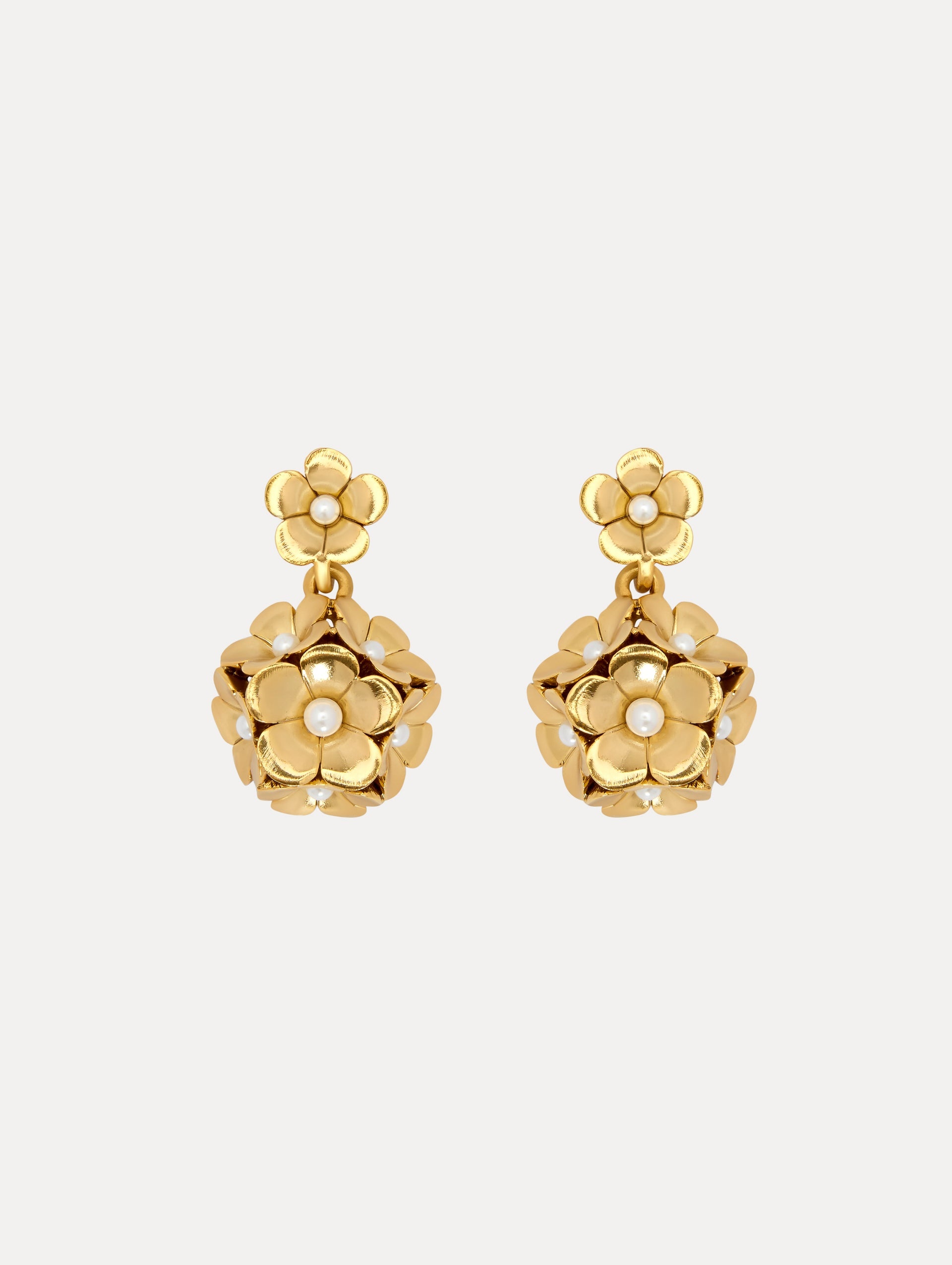 A bouquet of enameled florals adds whimsy to any look. These gilded button earrings pair best with swept-up hair to keep their subtle statement in focus. Details - Dimensions: 1.5 x 1" - Weight: 13 grams - Clip Backs with Comfort Pads - Style Code: R25J122_PRL Materials & Care - 90% Pewter, 2% Resin, 3% Steel, 4% Brass, 1% Gold