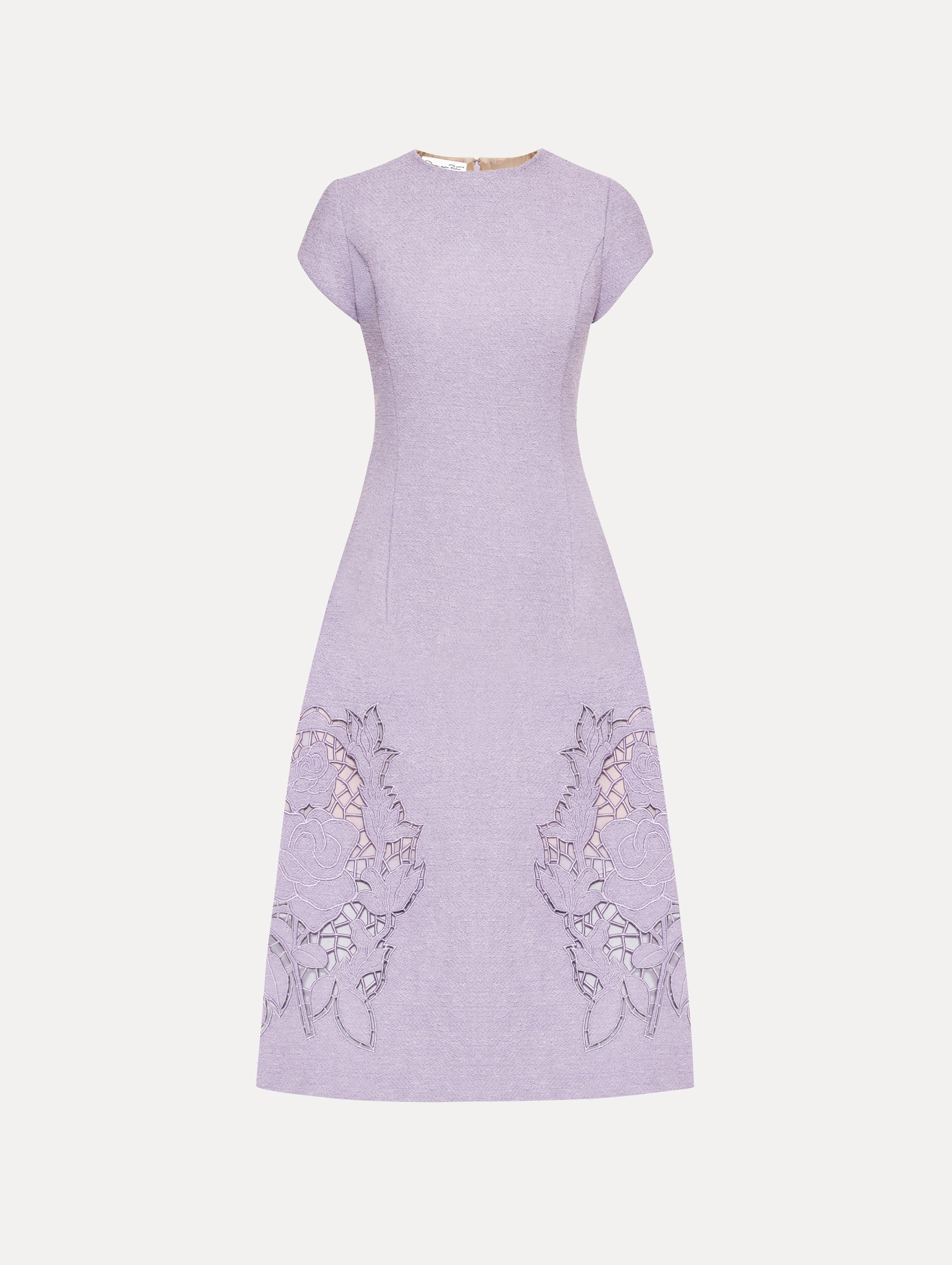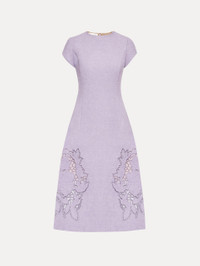 This A-line dress offers a new iteration of this season's painterly English Rose motif. Climbing florals are realized through threadwork cutouts in cotton wool tweed. Details - Short Sleeves - Jewel Neckline - Below the Knee Length - Concealed Back Zipper - 100% Silk Lining - Style Code: 25SE272CWD_THI - Country of Origin: Italy Materials & Care - 64% Cotton, 27% Virgin Wool, 9% Polyamide; Lining: 100% Silk