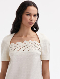 FERN EMBROIDERED TWEED SHIFT DRESS