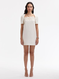 WHETHER OFFICE-BOUND OR EVENT-READY, THIS CLASSIC MINI DRESS FEATURES OSCAR DE LA RENTA'S SIGNATURE SHIFT SILHOUETTE WITH A SQUARE NECKLINE AND INTRICATE FERN EMBROIDERY. SHORT SLEEVES / SQUARE NECKLINE / SHIFT SILHOUETTE / MID-THIGH LENGTH / CONCEALED BACK ZIPPER / DRY CLEAN DIMENSIONS: MODEL IS 5'10.5" / 180 CM AND WEARING SIZE 2 MATERIAL: 94% VIRGIN WOOL, 3% MOHAIR, 2% POLYAMIDE, 1% ELASTANE MADE IN ITALY STYLE 24PE255SOE_IVR