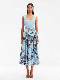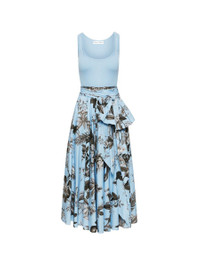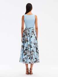 BOASTING A MIXED-MEDIA CONSTRUCTION, THIS MIDI DRESS FEATURES A KNITTED BODICE IN CONTRAST TO THE COTTON POPLIN SKIRT WHICH FEATURES THE FLORA & FAUNA PRINT, A PILLAR OF THE SPRING 2024 COLLECTION. SLEEVELESS / SCOOP NECKLINE / PULLOVER STYLE / CONCEALED SIDE ZIPPER / SIDE SEAM POCKETS / BELOW THE KNEE LENGTH / UNLINED / DRY CLEAN DIMENSIONS: MODEL IS 5'10.5" / 180 CM AND WEARING SIZE 2 MATERIAL: BODICE: 83% SILK, 15% POLYAMIDE, 2% ELASTANE; SKIRT: 97% COTTON, 3% ELASTANE MADE IN ITALY STYLE 24SN237FAP_BCB