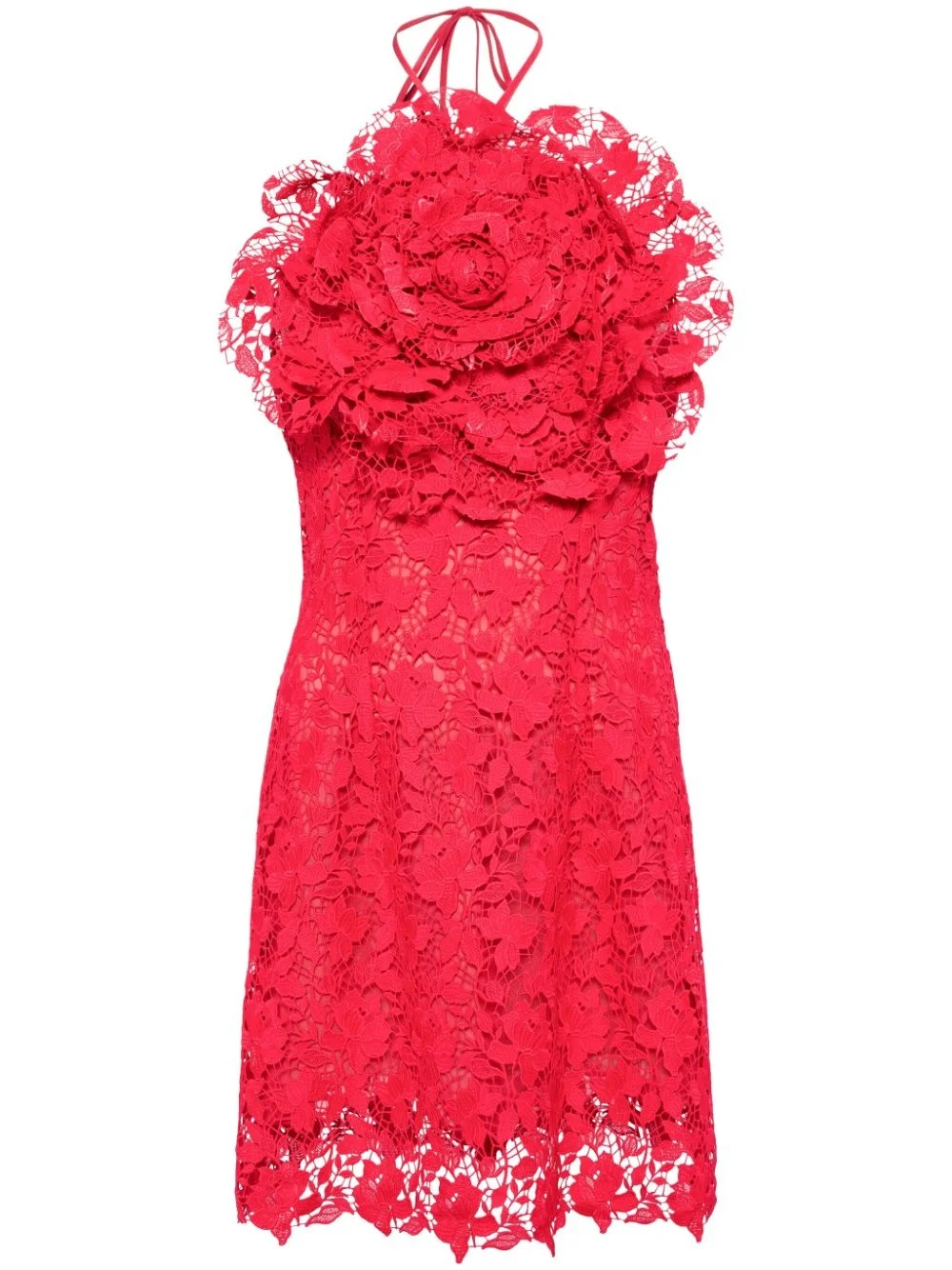 floral-applique lace minidress Highlights - Bright red - Guipure lace - Floral lace applique - Dart detailing - Halterneck - Halterneck tie fastening - Concealed rear zip fastening - Above-knee length - Straight hem Made in Italy Composition Outer: Polyester 100% Lining: Silk 100% SIZE & FIT Model measurements Height 5 ft 9 in(1.76 m) Bust/Chest 31.1 in(79 cm) Hips 35.03 in(89 cm) Waist 24.4 in(62 cm) FittingInformation Designed for a slim fit that sits just away from the body offering a close yet comfortable fit The dart stitching adds structure and a closer fit in the torso of this piece Made from a midweight non-stretch fabric This piece fits true to size – take your usual size Washing instructions Dry Clean Only