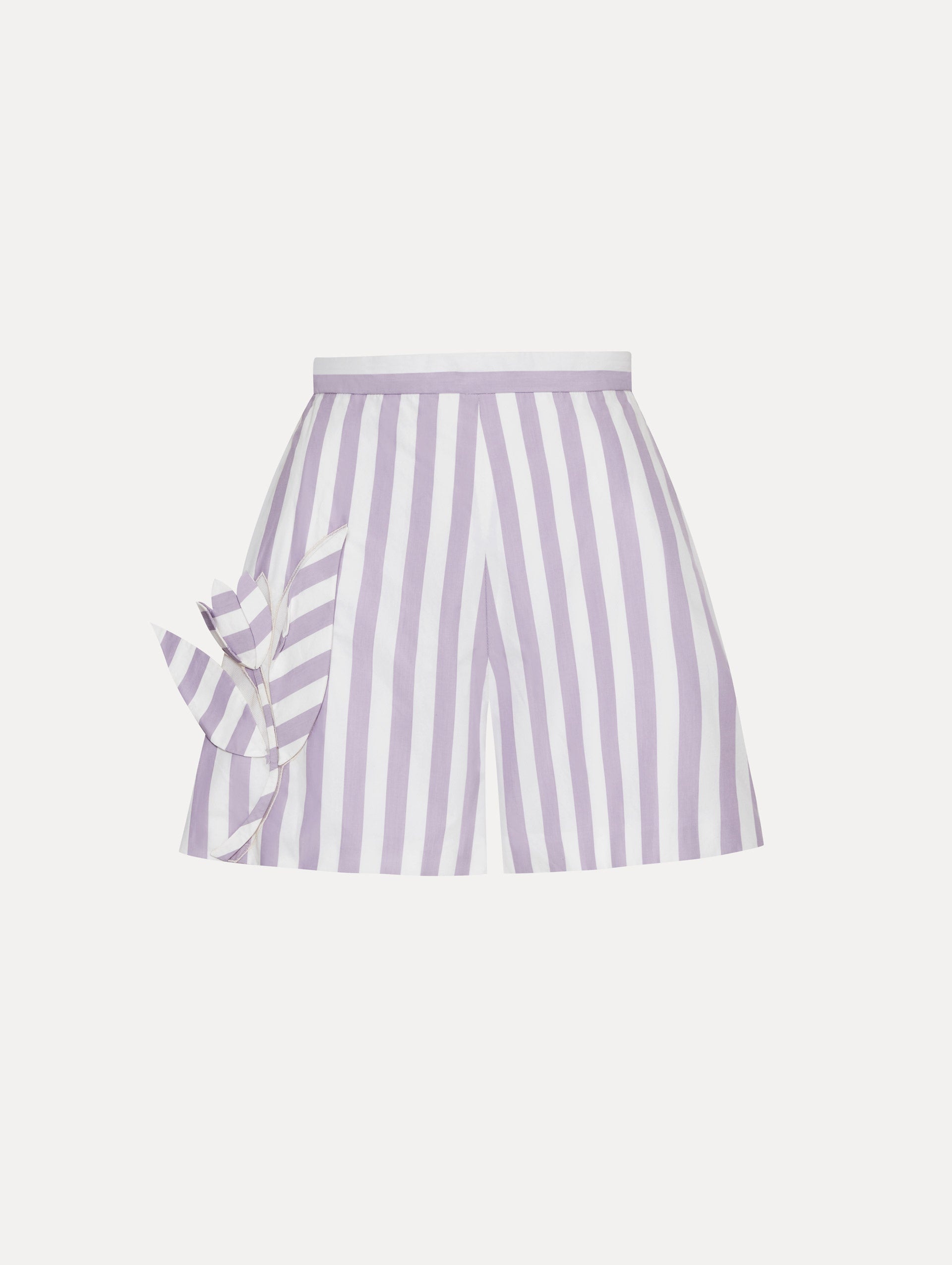 These wide-leg shorts bring a playful twist to classic tailoring. Cut from cotton poplin with a flattering fit, they feature delicate floral cutouts each centered with peek-a-boo pearls—an understated detail that rewards a closer look. Details - High Waisted - Banded Waist - Wide Leg Silhouette - Mid-Thigh Length - Concealed Side Zipper - 100% Cotton Lining - Style Code: 25SE308SOI_TIW - Country of Origin: India Materials & Care - 100% Cotton