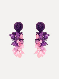 Vibrant blossoms come to life in a cascade of plexy petals, their dynamic form enhanced by delicate raffia accents. Dropping from a beaded fastening, the artful arrangement creates a striking interplay of color and texture. Details - Dimensions: 8 cm x 3.5 cm - Weight: 25 grams - Clip Backs with Comfort Pads - Style Code: P25J186_PRP - Country of Origin: India Materials & Care - 45% Acrylic, 20% Glass, 20% Viscose, 10% Polyester, 5% Brass