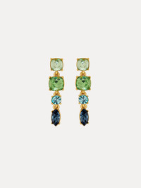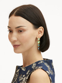 These statement drop earrings captivate with a cascade of vibrant glass crystals in an array of hues and cuts. Each stone, meticulously set, creates a dynamic interplay of color and light, while the varying shapes add depth and visual intrigue. Details - Dimensions: 61 mm - Weight: 26.2 grams - Post Packs - For Pierced Ears - European Crystal Glass - Style Code: S25J131_GRM - Country of Origin: Italy Materials & Care - 81% Brass, 19% Glass
