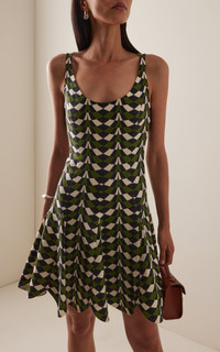 PRODUCT DETAILS - Sleeveless, scoop neck, flared hem, mini hem - Concealed zip fastening - Lined - Composition: 94% Virgin Wool, 5% Elastane, 1% Polyamide; Skirt Hem: 100% Silk - Color: Fern Multi - Dry clean only - Pre-Fall '25
