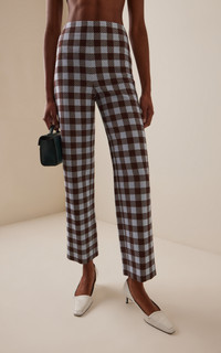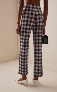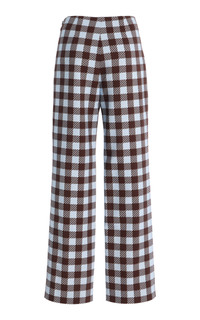 Gingham Wool-Blend Wide-Leg Pants plaid