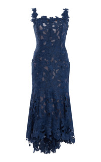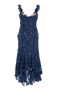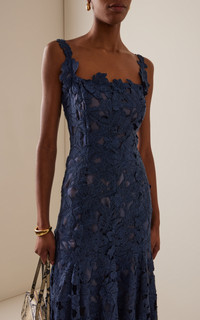 PRODUCT DETAILS - Sleeveless, square neck, A-line, midi hem - Concealed zip fastening - Lined - Composition: 100% Polyester; Lining: 100% Silk - Color: Denim Blue - Dry clean only - Pre-Fall '25