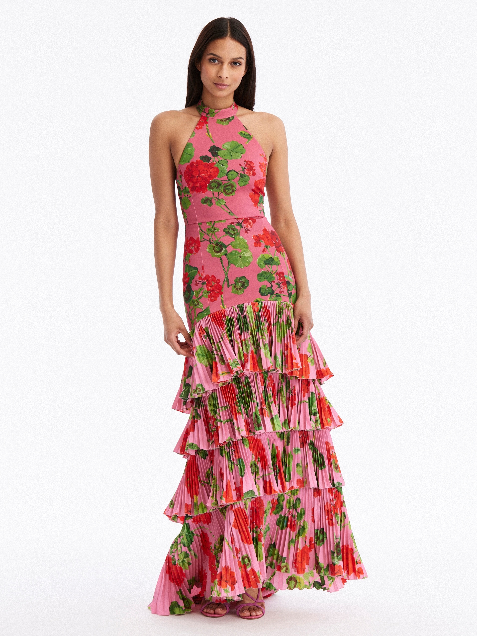 HALTER NECK GERANIUM TIERED GOWN