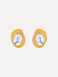 Set in a hammered gold-tone frame, these oval earrings center on faceted crystal stones that reflect the light with sculptural brilliance. Understated yet impactful, they bring a modern edge to everyday elegance. Details - Dimensions: 3.5 cm x 4.5 cm - Weight: 19 grams - Clip Back with Comfort Pads - Country of Origin: Italy - Style Code: R26J944_CRT Materials & Care - 98% Brass, 2% Plexi - Avoid exposing your jewelry to harsh chemicals. - Lotions, cosmetics, hairspray and perfumes can cause chemical reactions that can cause the finish to deteriorate. - Before handling, washing hands after applying makeup and hair products will help to preserve the finish. - Do not wear in the pool, on the beach or in the shower. - Wipe away dirt and body oils with a slightly damp microfiber jewelry cloth or cotton ball and allow to dry. - Store separately in cloth pouches or small boxes to minimize scratching."}]}]}