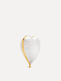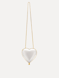 Playful yet sculptural, this heart balloon bag transforms a symbol of whimsy into a statement of modern romance. Rendered in a pearlescent hue and finished with a high-gloss sheen, the form captures the buoyant spirit of a balloon mid-flight. Details - Dimensions: 19 cm x 22 cm x 9 cm - Weight: 392 grams - Chain Drop Length 56 cm - Interior Pocket - Push-Lock Closure - Detachable Shoulder Strap - Black Nappa Leather Interior - Country of Origin: Italy - Style Code: 26RH178PLS_PRL Materials & Care - 90% Polyester, 10% Brass - Remove dust regularly with a dry, soft microfiber cloth. - Avoid prolonged exposure to direct sunlight to prevent discoloration. - Keep away from heat sources to maintain the bag’s shape and finish. - Store in its original packaging in a cool, dry place, protected from light, heat, and humidity. - Handle with care to avoid dropping onto hard surfaces. - Gently wipe fingerprints or smudges with a soft microfiber cloth. Avoid rough fabrics, water, or solvents, as they may damage the finish.