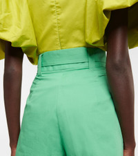 These structured wide-leg shorts from Oscar de la Renta form the foundation of an unexpectedly fresh evening style. Made from pure cotton in aloe green, they have a high-rise waistband with double front pleats and a matching self-tie waist belt. Product Details - Lining: 100% cotton, fully lined - Made in Italy - Detachable belt, Self-tie belt - Designer color name: Aloe - Closure: zipper, hook fastening - Pockets: side slit pockets - Care instructions: dry clean - Material: 100% cotton - Item number: P00747426 Size & Fit - Fits large to size - we recommend trying one size smaller - Adjustable at the waist - Mid-weight material - Wide-leg - High-waisted - Inseam length approx: 4,5cm-2" - The model seen in the picture is 178cm-5'10" and wearing a size US 2