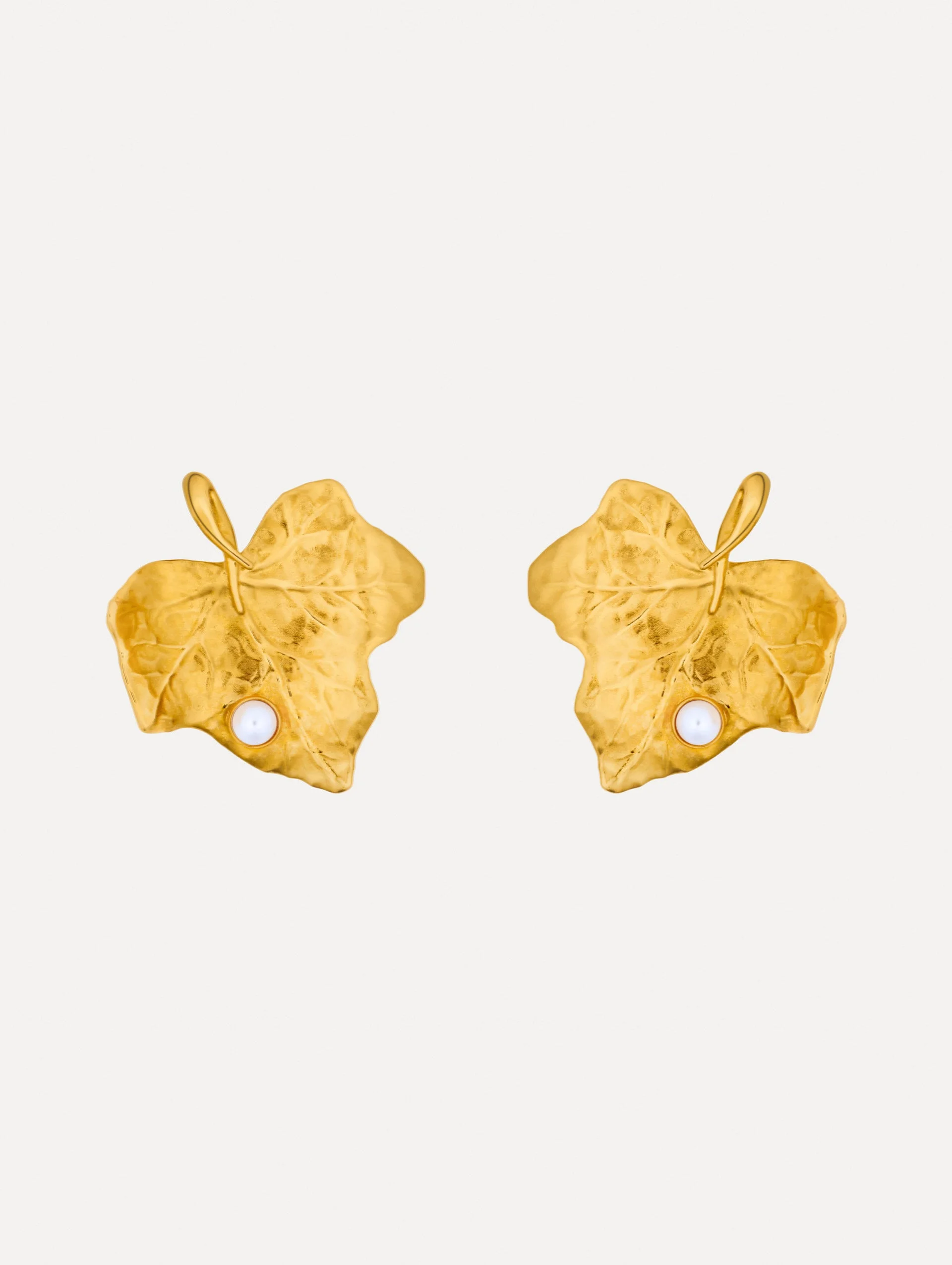 Golden ivy leaves are accented with lustrous pearls, their delicate texture and organic form offering an elegant nod to nature’s quiet refinement. Pair with the coordinating necklace. Details - Dimensions: 47 mm x 47 mm - Weight: 36 grams - Clip Back with Comfort Pads - Country of Origin: Italy - Style Code: R26J931_GOL Materials & Care - 100% Brass - Avoid exposing your jewelry to harsh chemicals. - Lotions, cosmetics, hairspray and perfumes can cause chemical reactions that can cause the finish to deteriorate. - Before handling, washing hands after applying makeup and hair products will help to preserve the finish. - Do not wear in the pool, on the beach or in the shower. - Wipe away dirt and body oils with a slightly damp microfiber jewelry cloth or cotton ball and allow to dry. - Store separately in cloth pouches or small boxes to minimize scratching.