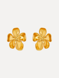 These gilt cherry blossom earrings capture the elegance of nature in its purest form. Sculpted with intricate detailing, the delicate blossoms exude a refined grace. Details - Dimensions: 49 mm x 41 mm - Weight: 56 grams - Clip Backs with Comfort Pads - Style Code: P25J927_GOL - Country of Origin: Italy Materials & Care - 99% Brass, 1% Gold