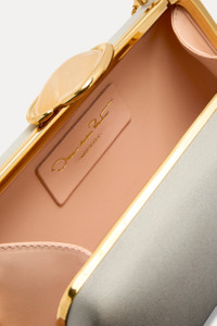 This timeless handbag captivates with its sleek, structured silhouette. Wrapped in luxurious satin, it's finished with Oscar de la Renta's iconic 'O' emblem and resin cabochon at the clasp—a nod to the House's storied heritage. With a gold-tone detachable chain link shoulder strap, this piece effortlessly transitions into a clutch. Details - Dimensions: 20 cm x 11 cm 4 cm - Weight: 395 grams - Chain Length 120 cm - Drop Length 55 cm - Lift-Up Closure - Detachable Chain Shoulder Strap - Blush Nappa Leather - Style Code: 00NH169SAT_CHP - Country of Origin: Italy Materials & Care - 90% Satin, 10% Brass